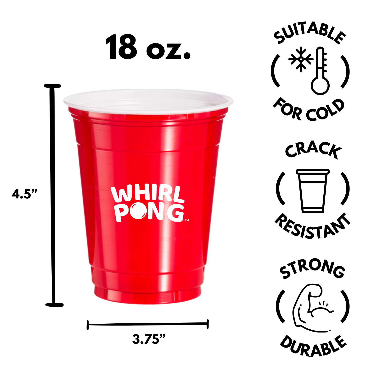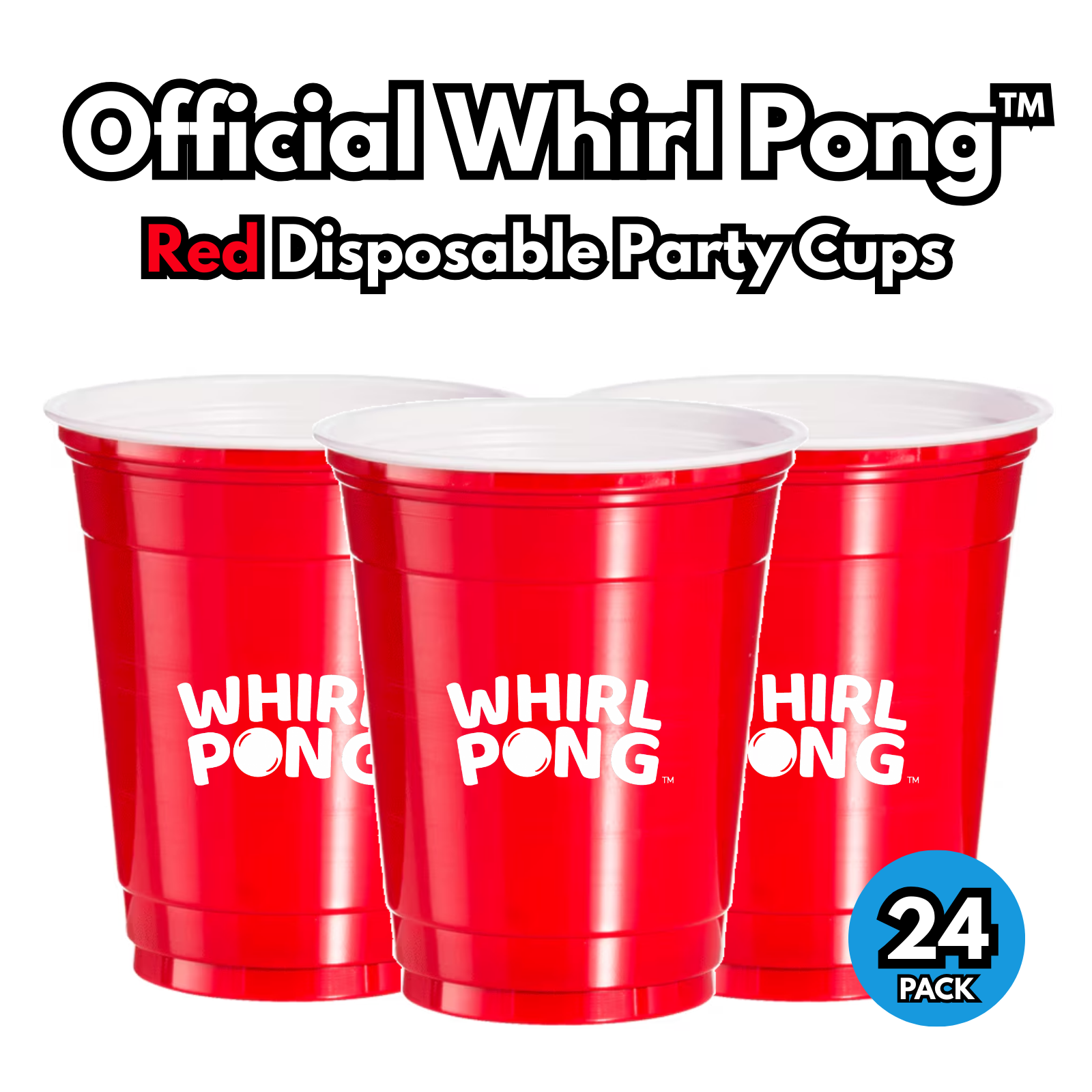 - 24 Official Whirl Pong Party Cups (18 oz): Sturdy, BPA-free red plastic cups—ideal for beer pong and all your favorite cold beverages.
